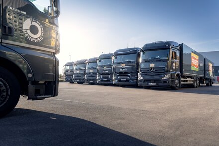 Wir setzen auf moderne und schadstoffarme Lkws sowie eine nachhaltige Tourenplanung, die Leerfahrten vermeidet. Die meisten Waren holen wir direkt bei unseren über 650 Herstellern ab, um die Transportwege effizient zu gestalten. Dank fünf strategisch gelegener Logistikstandorte optimieren wir den Warenfluss und erreichen eine maximale Auslastung unserer Lkws. So transportieren wir täglich ein Sortiment von über 7.000 Artikeln ressourcenschonend und zuverlässig. Ab 2026 planen wir den Einsatz erster Elektro-Lkw,