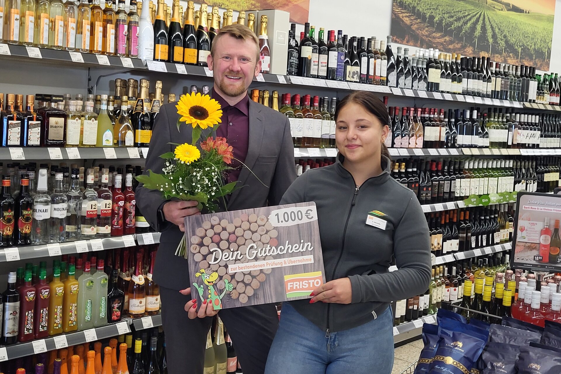 Frau Melissa Mariniello hat erfolgreich die Ausbildung zur Kauffrau im Einzelhandel gemeistert.! Sie wird das Team in Zukunft als stellvertretende Marktleiterin im FRISTO Getränkemarkt in Kaufbeuren, Wiesenstraße 17 verstärken und ihr Können unter Beweis stellen.