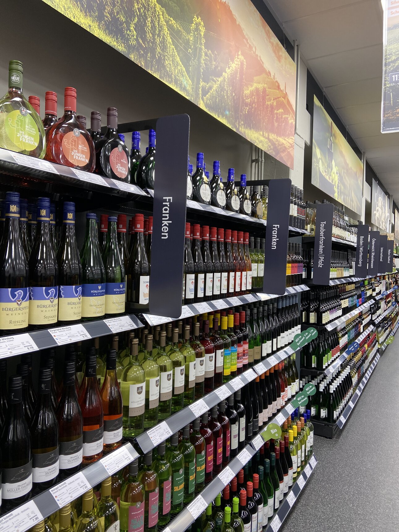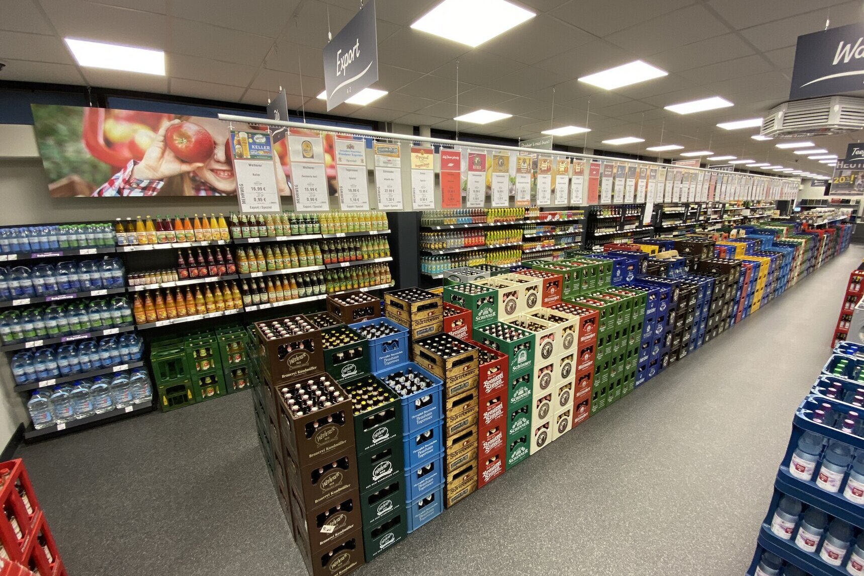 Nachder Renovierungsphase lädt Sie der umgebaute Markt nun zum Einkauf in moderner Atmosphäre ein. Hier erwartet Sie unser individuelles, regional abgestimmtes Getränkeangebot in gewohnter Vielfalt. Natürlich zu über 90% in umweltfreundlichen Mehrweg-Gebinden! Neben hochwertigen Spirituosen, regionalen Säften und verschiedensten Spezialitäten liegt der Fokus vor allem auf unserer gut sortierten Weinauswahl mit Produkten von nah und fern.