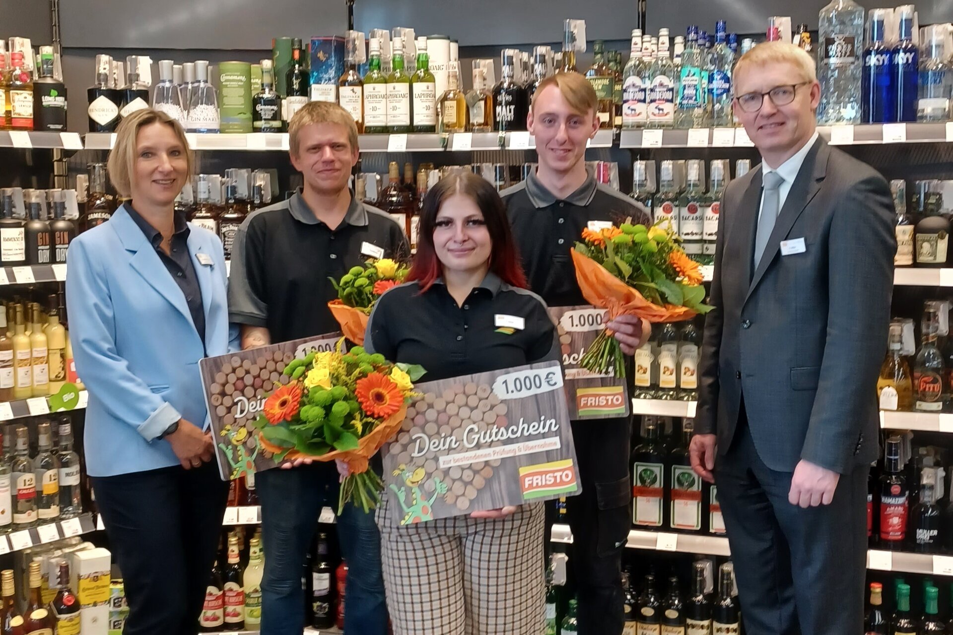 Zudem dürfen wir Frau Thora Vetter zur bestandenen Abschlussprüfung beglückwünschen! Sie hat die Ausbildung zur Verkäuferin erfolgreich abgeschlossen und wird in Zukunft im Verkauf im FRISTO Getränkemarkt in Bischofswerda mit ihren Fähigkeiten unterstützen.